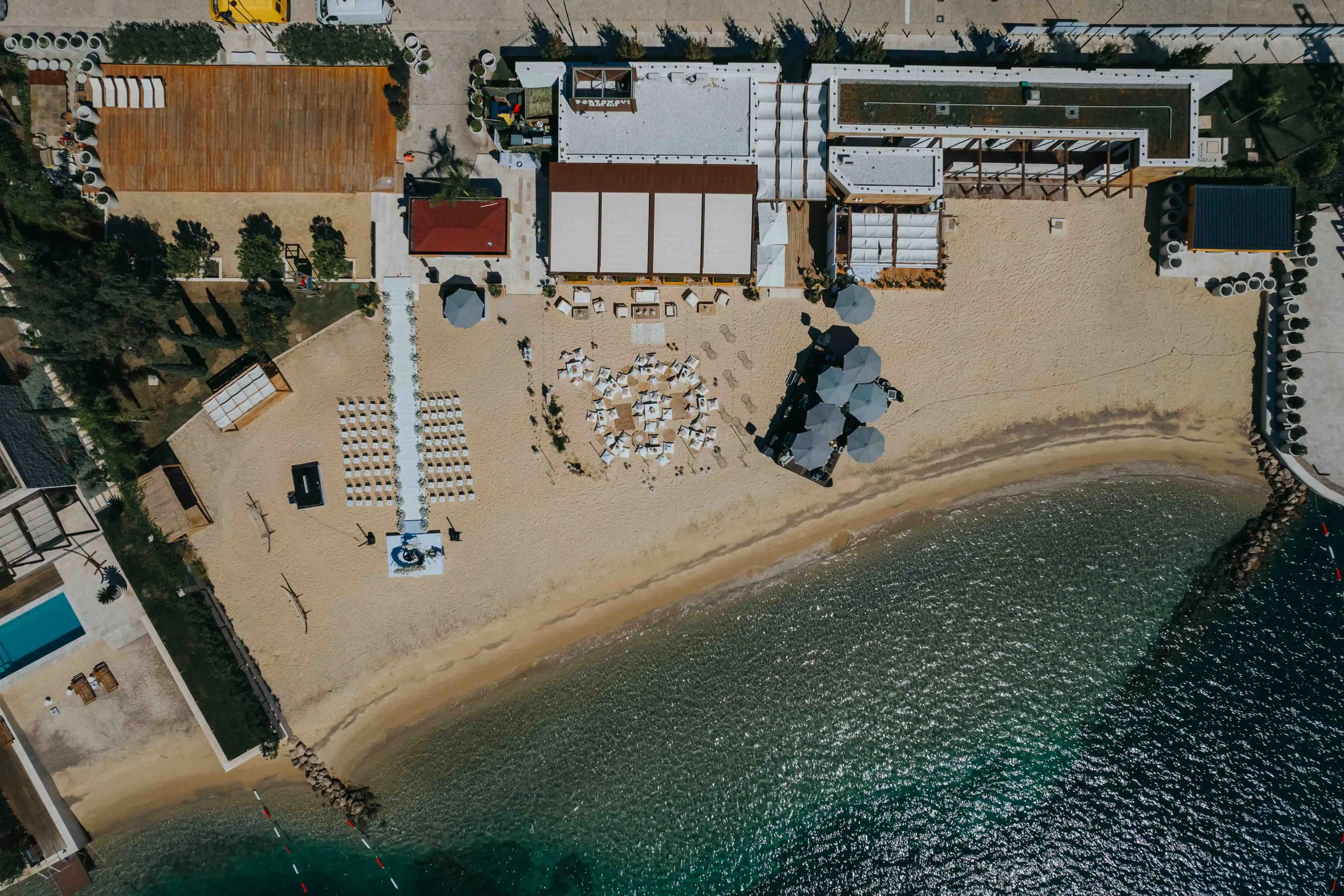 Portonovi suits intimate weddings from 20 to 60, and can scale to 100 comfortably across multiple venues. One&Only’s spaces can accommodate larger celebrations outdoors (up to ~300), with indoor options up to ~200, and buyout scenarios depending on dates.